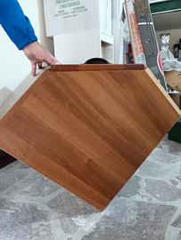 Design: Presenta una struttura a tre pannelli con un'anta centrale dotata di maniglia. Materiale: Legno in tonalità noce Stile: Molti modelli simili risalgono alla produzione di modernariato degli anni '70 e '80. Utilizzo: Può fungere da base per mobili da cucina, mobile porta telefono o piccola credenza angolare.
