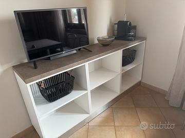 Vendo mobile da cucina bianco marca EFFEQUATTRO con piano effetto pietra, perfetto per organizzare utensili, piccoli elettrodomestici o da usare come base d’appoggio (TV, macchina del caffè, ecc.).