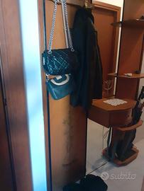 Mobile per entrata appendiabiti e portaombrelli con mensole, cassetto e specchio.