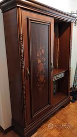 Mobile in legno antico con anta scorrevole che divide in due parti in cui una ha uno specchio con cassetto e dall'altra 3 appendi abiti, con intagli fatti a mano, nessuno striscio o segno di usura. Vendo per inutilizzo. Misure: profondità 35 cm, altezza 180 cm, larghezza 138 cm. 100€ trattabili