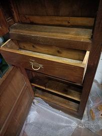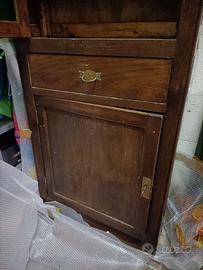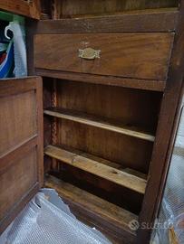 Nella parte inferiore, si trova un cassetto centrale ed altri 3 ripiani al di sotto del medesimo, protetti da uno sportello in legno.