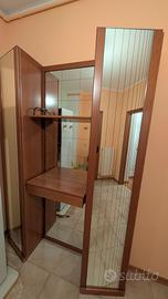 Ottime condizioni, mobile da ingresso in legno con specchi, due ante con ganci attaccapanni all'interno e un cassetto.