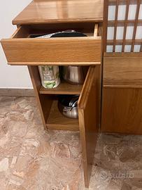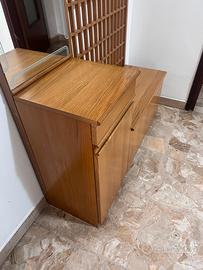 Vendo mobile da ingresso multifunzione in vero legno, caratterizzato da un design solido e senza tempo. Il mobile è perfetto per organizzare l'entrata di casa con stile e praticità. Il pezzo è composto da: • Pannello appendiabiti: a griglia con 4 pomelli robusti. • Specchiera: ampia, con raffinata decorazione incisa ai bordi. • Panca contenitore: ideale come seduta o per riporre borse e oggetti. • Mobiletto laterale: completo di cassetto svuotatasche e vano contenitore inferiore. Condizioni: Il mobile è in condizioni eccellenti, privo di graffi evidenti o segni di usura. Il legno è stato curato con attenzione e mantiene la sua lucentezza originale. Struttura molto solida e stabile. Dimensioni: • Larghezza: [114 cm] • Altezza: [panca 42,5cm, mobile 75cm, specchio/ appendiabiti 192cm] • Profondità: [38cm] Note per il ritiro: Il mobile si trova a Bussolengo. Smontaggio e trasporto sono a carico dell’acquirente (posso dare una mano per il carico in auto/furgone). Prezzo: 130€