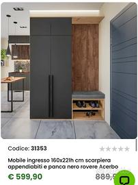 Mobile da ingresso in perfette condizioni: Altezza: 221cm Profondita : 40cm Larghezza: 170cm Altezza seduta 54cm e lunghezza seduta 70cm