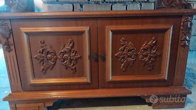 mobile da ingresso con cassetti e attaccapanni abbinato in legno degli anni 70