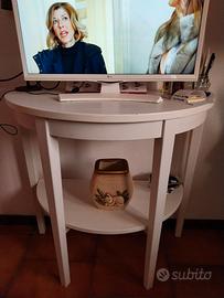 Mobile da ingresso bianco Ikea semicircolare. Il mobile è usato ma in buono stato. Misura 80 cm. larghezza, profondità 40 cm, altezza 73. Non spedisco.