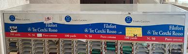 Vendo mobile da esposizione originale Coats Cucirini, modello “Filofort Tre Cerchi Rosso”.