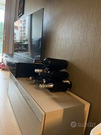 Splendido mobile da parete Lago Design. Dimensioni modulo a terra: 148+75 cm tot., profondità 41 cm, h modulo chiaro 38 cm, modulo scuro 57 cm. Mensole Lago design: lunghezza 117,5 cm, h 18,5 cm, profondità 25 cm.