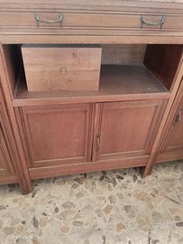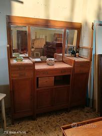 mobile da sala in rovere con specchi molati e vetri decorati marmo rosa portogallo.mis. lar170 alt 124 prf53.