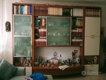 Ottimo mobile da sala in legno ciliegio con ante in vetro, cassetti e libreria.