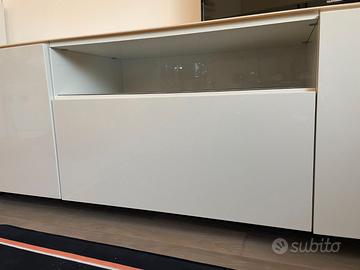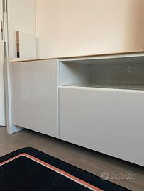 Mobile da sala laccato lucido con ripiano in vetro. Misure lunghezza m.2.20 *0.60 h. 0.75m. Cassettiera centrale molto capiente. Ante laterali con ripiano interno. Smontaggio e ritiro a carico dell'acquirente. Pavia città.