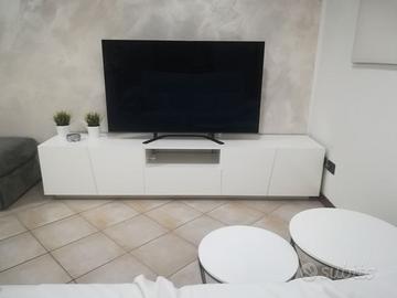Vendo mobile da sala porta tv bianco laccato in perfette condizioni come nuovo misure: L 220cm x A 46,5cm x P 43,5cm per il ritiro/trasporto e smontaggio a carico dell'acquirente marzo e aprile 2026.