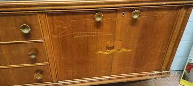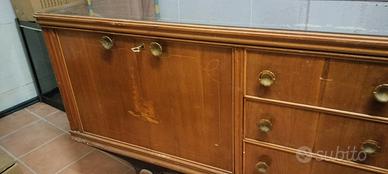Mobile da sala in legno massiccio con base in vetro. Lunghezza 212 cm altezza 95 cm profondità 48 cm Ritiro a Venaria (To) No spedizione.
