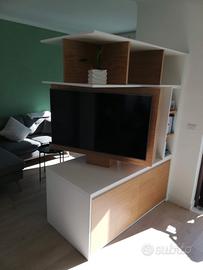 Vendo elegante mobile da salone completamente in legno, realizzato artigianalmente, solido e di alta qualità. Dotato di sistema TV con rotazione a 180°, ideale per guardare la televisione da diverse angolazioni. Il mobile è composto da: 4 ante 2 cassettoni capienti Libreria / portaoggetti laterale Vani portaoggetti superiori Dimensioni: Lunghezza: 1,51 m Profondità: 74 cm Altezza: 1,98 m Mobile robusto e funzionale pagato 3.000€ per info contattatemi
