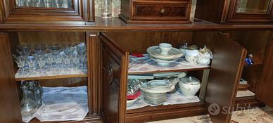Vendo mobile in legno noce con vetrine, ripiani e vani porta suppellettili. Dimensioni in cm.: lunghezza 225, altezza 265, profondità 50. Eventuale smontaggio e spedizione a cura dell'acquirente.