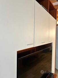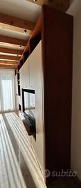 Vendo elegante mobile parete attrezzata Besana, realizzato su misura e impiallacciato in vero legno di ciliegio, marchio italiano di alta qualità.