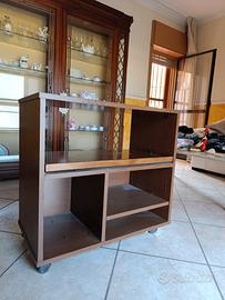 Un mobiletto da soggiorno in legno con design minimalista, ripiani per esporre oggetti decorativi, senza cassetti e ante, è un elemento di arredo elegante e funzionale. La sua struttura semplice e lineare si adatta perfettamente a spazi moderni e minimalisti, offrendo un modo raffinato per mostrare oggetti di design o decorativi. È ideale per aggiungere un tocco di stile e organizzazione al soggiorno.