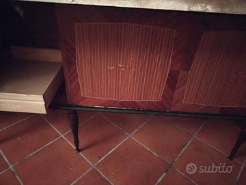 Cedo a modico prezzo un mobile anni 60 del novecento, composto da ante laterali e cassettiera centrale, lunghezza circa 2 metri. Abbinato, cedo specchio con cornice dorata, lunghezza circa 2 metri, stessa epoca. È un mobile da soggiorno in buono stato. Da ritirare in autonomia con furgoncino.