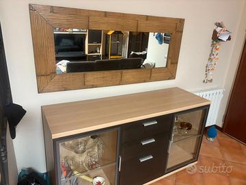 Vendesi mobile da soggiorno compreso di specchio, mobile L. 180, P. 57, H. 95, specchio 180x80.