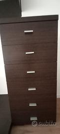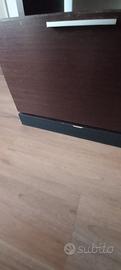Mobile da soggiorno Ikea, composto da vari elementi posizionati su una pedana. In buone condizioni, sia dentro che fuori (l'unico punto rovinato è quello che si vede in foto). Misure: cassettiera: L 53, P 44, H 116 mobile tv: L 120, P 45, H 66 pensili: L 180, P 35, H 36