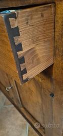 L' interno è corredato di ripiani per lo stoccaggio e le giunzioni del legno sono a incastro come i lavori di fattura artigianale ( vedi foto). Viene completata da serrature, chiavi e pomelli anticati.