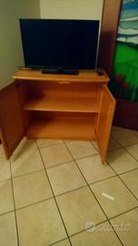 Vendo un mobiletto da soggiorno in legno, color paglierino, misure: altezza cm 80, profondità cm 48, lunghezza cm 94. Mobile usato ma in buono stato di conservazione. . Vendo in zona Vimercate (MB).