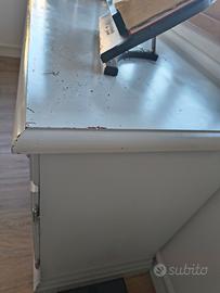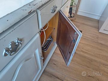 vendo mobile da soggiorno ridipinto effetto shabby completamente in legno profondo 51 cm, alto 85 cm, 174 cm. le striature i graffi e le ammaccature presenti sul piano del mobile sono state vulture da chi lo ha relaizzato