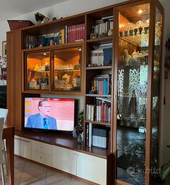 270cm di larghezza x 223cm di altezza x 43cm di profondità della zona libreria, mentre per la base tv la profondità è di 59cm. È presente illuminazione interna (vedi foto 2).