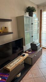Vendo mobile da soggiorno tinta venge e grigio con ante in vetro trasparente opaco e mensole retrilluminate come da foto. In buone condizioni misure lunghezza 190 cm altezza 190 cm profondità alla base 56 cm profondità mobile con ante in vetro 35 cm .Solo consegna a mezzo dell’acquirente .