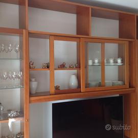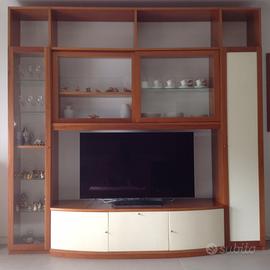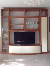 Vendo mobile da soggiorno in legno massello, pezzo unico fatto a mano da artigiano, legno spesso cm.2,5 misura del mobile mt. 2,60 x 2,60. Colore panna e ciliegio. In buone condizioni. Smontabile in 4 formati.