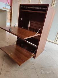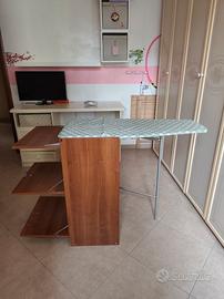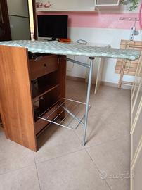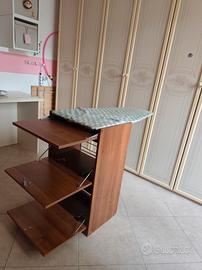 mobiletto con asse da stiro incorporata, avente griglia per appoggio panni e due cassetti contenitori. Colore ciliegio.