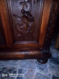 Mobile del 1800 in noce, legno massello completamente intagliato con vetri colorati, buone condizioni.