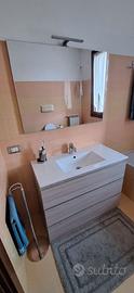 Come da foto vendo intero mobile del bagno con specchio e rubinetteria tutto in ottime condizioni. Cassettiera formata da 3 cassetti spaziosi alta 84 cm e larga 100 cm. Specchio con punto luce largo sempre 100 cm e alto 75 cm. Vendo per rifacimento bagno.