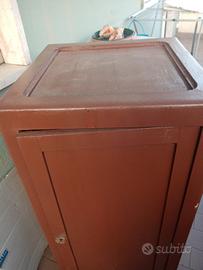 Mobile degli anni 40 da ristrutturare. Con i ripiani, Colore marrone. Altezza 1 metro. Larghezza 45cm. Profondità 45cm.