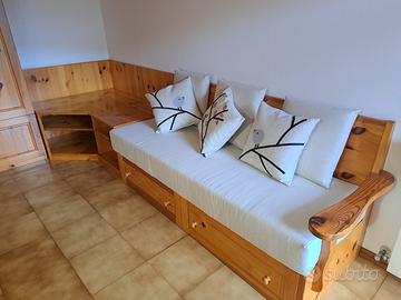 Materasso del divano (fatto rifare NUOVO) compreso nel prezzo. Il mobile è in legno di pino massiccio, utilizzato ma ben conservato come da foto.