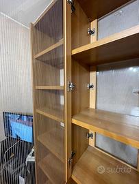 Vendo elegante mobile libreria in legno chiaro con doppio accesso, perfetto sia per l’arredamento domestico che per ambienti professionali.
