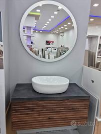 Cassetti con chiusura soft-close , lavabo da appoggio in ceramica e specchio