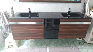 Mobile bagno doppio lavello in cristallo spesso 2 centimetri completo di specchio abbinato e miscelatori costo nuovo 2600€ vendo a 800€ vero affare per la qualità del mobile. Misure L1,76x p50 h54