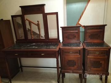 vendo bellissimo mobile d'epoca con marmo e specchi chiudibili e comodini stesso stile