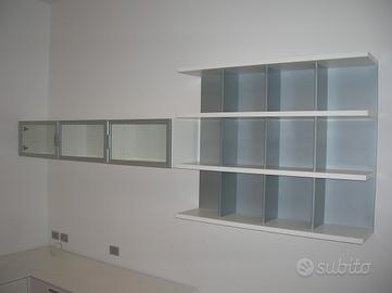Tre Pensili a vetrinetta laccati bianchi con profili in alluminio e un pensile con mensole a libreria . tutto in perfette condizioni senza segni di usura !