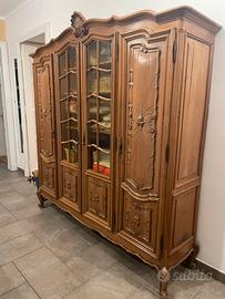 Mobile a quattro ante con ripiani interni e scrivania abbinata cinque cassetti. Dimensioni mobile: altezza 200 cm, lunghezza 185 cm, profondità 46 cm. Dimensioni scrivania: altezza 80 cm, lunghezza 140, profondità 80 cm.