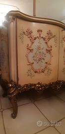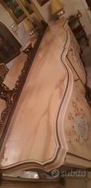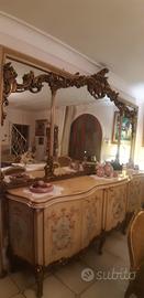 Mobile della Silik con ante, top in marmo rosa del Portogallo, specchiera con decori in legno dorato. Misure: h 268 totali, solo la base con ante h.100; L. 315 cm. Ritiro a carico dell'acquirente a Roma zona Bufalotta (piano terra, senza scalini). Buone condizioni.