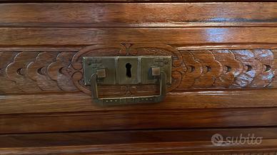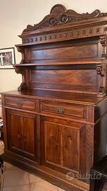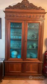 Mobile e Vetrina coordinati del 1915-1920,, interamente intagliati a mano, in noce nazionale. serramenti originali. Mobili completamente restaurati nel 2005. Disponibile anche per la vendita separata (Mobile Euro 7.000, Vetrina Euro 5.000)