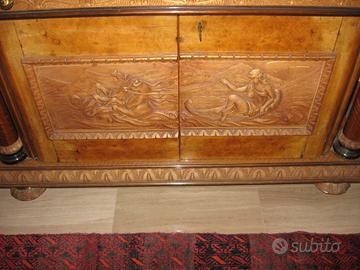 - Mobile in legno pregiato e lavorato stile Impero piano in marmo dimensioni: 298x57x82cm. (700 con porta vivande)
