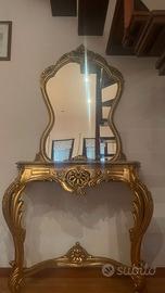 Consolle stile Luigi Filippo in legno massello e finitura in foglia oro.