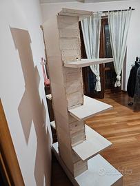 Mobile Espositore il legno. 5 ripiani. Facilmente spostabile, con ruote. Legno di recupero, pallet. Misure : larghezza massima alla base, 94 cm. x 45 cm. Altezza totale 180 cm. Artigianale. Ideale per negozi.