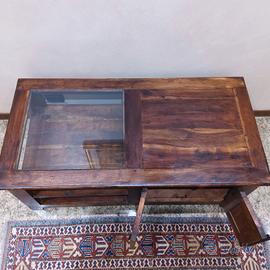 vendo mobile etnico in legno massello di palissandro indiano con sezione in vetro. questo tipo di mobile è molto versatile può essere utilizzato come tavolino oppure vista la