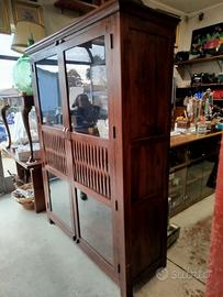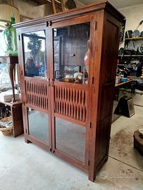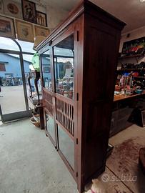Mobile etnico in legno teak con ampia vetrina per esposizione. Misure: (143 x 55 h. 200) Ottime condizioni!