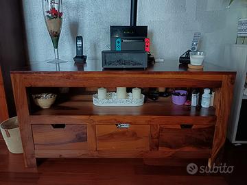 Vendo per rinnovo arredamento mobile porta TV stile etnico in legno massello pieno, tenuto perfettamente. 120 cm di larghezza, 55 di profondità e 60 di altezza