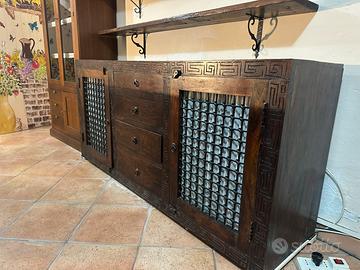 Vendo mobile etnico in ottime condizioni molto pesante con misure lunghezza 175 cm altezza 80 cm profondità 46 cm veramente molto bello Si richiede ritiro a carico dell’acquirente